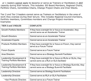 Leadership roles across EO are organized two ways: tier and contribution.