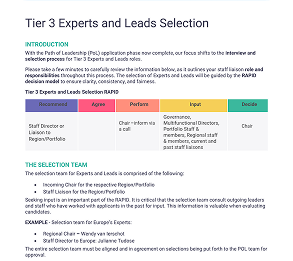 Experience roles centered on hands-on contribution, subject-matter expertise, and execution. They often serve as a bridge between chapter leadership and the Regional Councils, Portfolios and Committees. Nearly all members first enter the Path of Leadership through Tier 3 after having served on their local chapter boards.