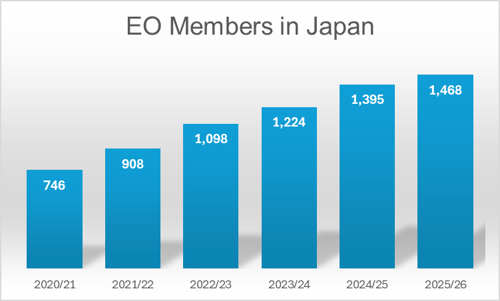 Previously, chapters in Japan had been included in the EO’s North Asia region. The decision to name Japan EO’s 11th global region reflects a strategic opportunity for the organization: This year, EO’s Global Board made a US$600,000 investment to spur growth in the region over the next two years.
